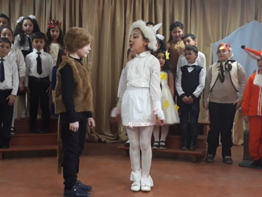 Lուսե ժպիտով լուսանկարից նայող Հովհաննես Թումանյանը կարծես մասնակից էր միջոցառմանը, որը կազմակերպել էր դասվար Օլյա Զաքարյանը իր փոքրիկ աշակերտների՝ IIբ դասարանի սաների մասնակցությամբ: Միջոցառման ողջ ընթացքում Թումանյանական շունչն ու ոգին էր իշխում դահլիճում: Այն սկսվեց մուտքի հակիրճ խոսքով, որի ընթացքում երեխաները ներկայացրին մեծ բանաստեղծի կյանքի կարևորագույն փաստերը, խոսեցին նրա մեծության՝ ամեն տարիքի համար գրելու և հայ ամենաճանաչված գրողը լինելու մասին: Մեծ ոգևորությամբ և հուզմունքով երեխաները արտասանեցին մանկական հանրածանոթ բանաստեղծություններ, երգեցին Թումանյանի տեքստերով գրված երգեր: «Աշուն», «Փիսիկի գանգատը», «Հեյ ջան անցան», «Տերևաթաափ», «Ծիտիկի օրորքը», «Կաքավիկ», «Ախ, ինչ լավ են» երգերի խմբային, անհատական, բեմականացված կատարումները էլ ավելի հարստացրին միջոցառումը: Նշանավոր «Շունն ու կատուն» և «Չարի վերջը» բալլադների բեմականացումները, որոնց ընթացքում դերակատար երեխաները ցուցադրեցին անկաշկանդ խաղ, դրական լիցքեր ու նոր ուրախություն հաղորդեցին հանդիսատեսին: Միջոցառումը մեկ անգամ ևս փաստեց որ անմահ է Թումանյանը, անմահ է նրա ստեղծագործությունը: