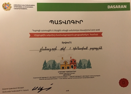 «Դպրոցի արտաքին և ներքին տեսքի ամանորյա ձևավորում 2017-18» մրցույթ