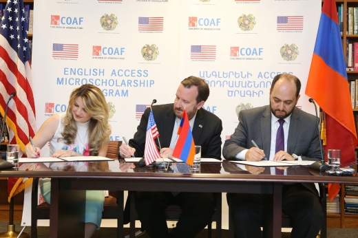 ՀՀ կրթության և գիտության նախարարությունը՝ ի դեմս նախարար Արայիկ Հարությունյանի, Հայաստանում Ամերիկայի Միացյալ Նահանգների դեսպանատունը՝ ի դեմս արտակարգ և լիազոր դեսպան Ռիչարդ Միլսի և «Հայաստանի մանուկներ» հիմնադրամը՝ ի դեմս հիմնադրամի փոխտնօրեն Իննեսա Գրիգորյանի, կնքել են արարողակարգային հուշագիր: Հուշագրի համաձայն՝ ԱՄՆ դեսպանության անգլերենի ուսուցման Access միկրոկրթաթոշակային ծրագրով Հայաստանի մարզերում 2 տարի տևողությամբ կկազմակերպվեն անգլերենի խորացված ուսուցման արտադպրոցական ինտենսիվ պարապմունքներ: Այս նորացված նախաձեռնությամբ մարզային 15 համայնքների 13-18 տարեկան 500 աշակերտներ անգլերենի իմացության կատարելագործման ու առաջնորդման հմտությունների զարգացման հնարավորություն կունենան: Պարապմունքները կանցկացվեն հանրակրթական դպրոցների շենքերում կամ համայնքային կենտրոններում, ինչպիսին է օրինակ՝ «Հայաստանի մանուկներ» հիմնադրամի ՍՄԱՐԹ կենտրոնը Լոռու մարզում: «Ծրագրի շրջանակներում Հայաստանի մարզերում, հատկապես գյուղական համայնքներում, նախատեսվող միջոցառումների իրականացմամբ հնարավոր կլինի կատարելագործել մասնակիցների անգլերենի իմացությունը և զարգացնել անգլերեն լեզվի ուսուցիչների կարողությունը: «Կարևորում եմ կրթության ոլորտում նման համագործակցությունը և անգլերենի ուսուցման որակի ապահովմանն ուղղված ԱՄՆ դեսպանության ու «Հայաստանի մանուկներ» հիմնադրամի աջակցությունը: Ծրագրի իրականացումը կարող է հարթակ ստեղծել դպրոցներում անգլերենի ուսուցման մեթոդաբանության մշակման և ուսուցիչների նպատակային վերապատրաստման գործընթացներն առավել արդյունավետ իրականացնելու համար», - ասել է ՀՀ ԿԳ նախարար Արայիկ Հարությունյանը: «Սա իրապես գործընկերություն է, որի ներքո երեք կազմակերպություն՝ Դեսպանությունը, «Հայաստանի մանուկներ» հիմնադրամը և Նախարարությունը մեկտեղել են իրենց ջանքերը, որպեսզի մարզերի երեխաներն ավելի լավ տիրապետեն անգլերենին: Վստահ եմ, որ իրենց նոր գիտելիքներն ու հմտությունները նրանք կօգտագործեն կյանքի բարելավման, համայնքների հզորացման և երկրի զարգացման գործում: Հպարտ եմ, որ մենք կարող ենք շարունակել այս կարևոր նախաձեռնությունը, քանզի մերօրյա գլոբալ շուկայական միջավայրում անգլերենը շատ մեծ կարևորություն ունի», - նշել է ՀՀ-ում ԱՄՆ դեսպան Ռիչարդ Միլսը: Ծրագրի իրականացմանն ուղղվող 411.000 ԱՄՆ դոլարը, որը ներառում է ԱՄՆ դեսպանության կողմից հատկացվող 300.000 ԱՄՆ դոլարը և «Հայաստանի մանուկներ» հիմնադրամի կողմից տրվող 111.000 ԱՄՆ դոլարը` կապահովեն ծրագրի իրականացումը մինչև 2021թ.: Սա Հայաստանում 2011թ. մեկնարկած ԱՄՆ դեսպանության անգլերենի ուսուցման Access միկրոկրթակթոշակային ծրագրի նոր փուլն է: Մինչ այժմ «Հայաստանի մանուկներ» հիմնադրամի և մեկ այլ գործընկեր ՝ Փրոջեքթ Հարմոնի Ինթերնեյշնլ կազմակերպության կողմից իրականացված աշխատանքների արդյունքում այս ծրագրի շրջանակներում անգլերենի դասընթացներին մասնակցել են 580 հայ դպրոցական: «Հայաստանի մանուկներ» հիմնադրամը կրթությունը դիտարկում է որպես երիտասարդների ներուժի խթանման ու շարունակական կատարելագործման շարժիչ ուժ: Այս առումով անգլերենի ուսուցումը մեր հիմնադրամի կրթական ծրագրերի անբաժանելի մասն է, և այսօր մենք ուրախությամբ ԱՄՆ դեսպանության և ՀՀ կրթության և գիտության նախարարության հետ նշանավորում ենք մեկ այլ խոշոր ձեռքբերում»,-ընդգծել է հիմնադրամի փոխտնօրեն Իննեսա Գրիգորյանը: Աղբյուրը՝ Edu.am
