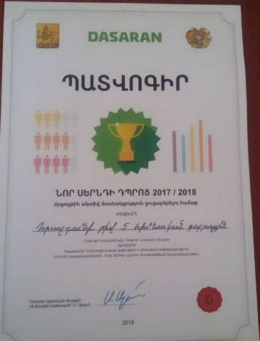 Նոր սերնդի դպրոց 2017/2018 մրցույթին ակտիվ մասնակցության պատվոգիր