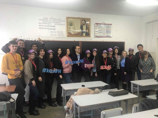 Программа «Послы русского языка в мире» реализуется Государственным институтом русского языка им. А.С. Пушкина четвёртый год. Данная экспедиция является пятой по счёту в Армении, однако в Ванадзор послы приехали впервые. Послы проводили уроки и в старшей школы N11 имени А. С. Грибоедова. Именно у нас произошла долгожданная встреча между нашими учащимися- участниками летней смены в Артеке - и их наставниками, которые теперь приехали в Ванадзор. Послы проводили занятия, направленные на знакомство детей с русской культурой, географией России, и на, конечно же, преодоление барьеров при употреблении русского языка. Так в ходе прошедших занятий ребята познакомились с русским народным прикладным творчеством - сами разукрасили матрешек и сделали тряпичных кукол. Научились танцу «Калинка-малинка», который родители и учителя школ смогли увидеть на отчетном концерте. Уроки проходили в игровой форме, поэтому заинтересованность учеников была достаточно высокая. Завершением программы стал финальный концерт волонтёров и их учеников. Концерт получился ярким благодаря проявленному старанию учащихся, поддержке учителей и директоров школ. На концерте всем участникам программы, были выданы сертификаты, а также подарки в память о приезде послов русского языка в гостеприимную Армению.