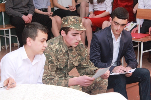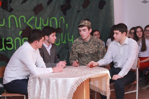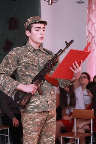 · Հայոց բանակն արդեն 27 տարեկան է, այն մեր երկրի անկախ պատմության շարժիչ ուժի հիմնական կրողն է. ԱՅՍ օրը ազգային տոն է դարձել բոլորիս համար: ՈՒստի ԿԳՆ Նոր Հաճնի ավագ դպրոցը նույնպես մեծ շուքով նշեց Հայոց բանակի տոնը: Միջոցառումը կազմակերպել էին 11/2 և11/3 դասարանների դասղեկներ Հ.Մուրադյանը և Թ. Ղազարյանը: Որպես պատմական ակնարկ՝ աշակերտները պատմեցին հայոց բանակի կազմավորման մասին, ապա ցուցադրվեց փոքրիկ բեմականացում ,թե ինչպես են ծնողները որդիներին ճանապարհում բանակ : Աշակերտներն իրենց խոսքում կարևորեցին մոր դերը բանակաշինության մեջ, այնուհետրև ծաղիկներ նվիրեցին միջոցառմանը հրավիրված այն մայրերին ,ում որդիներն այսօր հերոսաբար ծառայում են հայոց բանակում:Միջոցառումը ամփոփվեց խորհրդանշական յարխուշտայով : Միջոցառմանը հրավիրված էին ՀՀ ՊՆ Լուսակերտի հրետանային ուսումնական զորամասի մայոր Հ. Մանսուրյանը և ժամկետային զինծառայողներ : Միջոցառմանը ներկա էր ՀՀ ՊՆ Ավիացիոն զորամասի հրամանատարի ԱՀՏԱ-ի տեղակալ մայոր Գ. Զաքարյանը : Հրավիրվածների շարքում էին նաև մեր դպրոցի շրջանավարտներ Աբրահամ Հարությունյանը, Հայկ Հովակիմյանը, Սարգիս Գևորգյանը,Արսեն Մուրադյանը և Գևորգ Խաչատրյանը ,ովքեր մասնակցել են ապրիլյան քառօրյա պատերազմին: Բոլորը պարգևատրվեցին շնորհակալագրերով և նվերներով :Ելույթ ունեցավ Նոր Հաճնի ԵԿՄ անդամ արցախյան և ապրիլյան պատերազմի մասնակից Ս. Մաճկալյանը: