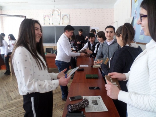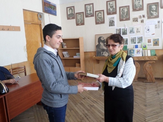 «Ես կմնամ հար ու հավետ….» Հովհաննես Թումանյան 150 Գրքի նվիրատվության օր… Սևանի Խ. Աբովյանի անվան ավագ դպրոցում նույնպես փետրվարի 19-ին մեկնարկեց թումանյանական տարին` նվիրված ամենայն հայոց բանաստեղծի 150-ամյակին: 10-րդ դասարանցիները (հայ գրականության ուսուցչուհի` Անահիտ Ավետիսյան) ունկնդիրներին մատուցեցին մեծ բանաստեղծի ստեղծագործությունների տոնական ասմունքը` «իսկական անկեղծ բանաստեղծությունը» (Ավ. Իսահակյան), ներկայացրին նաև տասը զավակների հուշերի պատառիկներ` նվիրված սիրելի հայրիկին: Ինֆորմատիկայի կաբինետում ինֆորմատիկայի ուսուցչուհու`դպրոցի փոխտնօրեն Լ. Սոլոմոնյանի աջակցությամբ սովորողները դիտեցին «Հավերժի ճամփորդը» փաստագրական ֆիլմը, «Մեր արխիվը» հաղորդաշարի թումանյանական հաղորդումը: Այնուհետև կատարվեց գրքի նվիրատվություն. Աշակերտները գրքեր նվիրեցին միմյանց, գրականության կաբինետին, պատասխանեցին օրվա խորհրդին առնչվող «Ինչու կարդալ» հարցաթերթիկին: Գրականության կաբինետը հարստացավ նաև Սևանի քաղաքապետ Սարգիս Մուրադյանի նվիրած «Հայ դասականներ» մատենաշարի գրքերով: Աշակերտներին ողջունեցին փոխտնօրեն Լ. Գրիգորյանը և մեթոդմիավորման նախագահ Է. Իսրայելյանը: Վերջինս հիացմունք առաջացրեց թումանյանական գոհարների իր բարձրարվեստ ասմունքով: