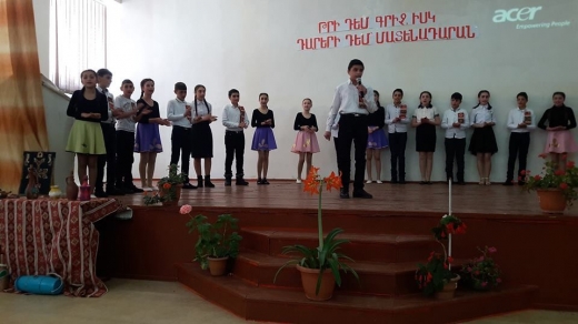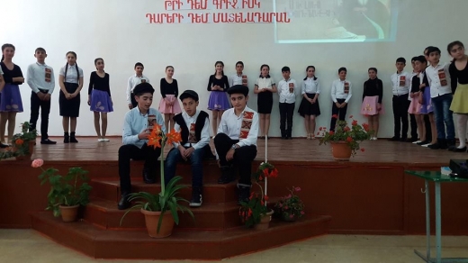 Համայն երկրագնդի վրա չկա երևի մի այլ երկիր, որն այնքան լիքը լինի հրաշքներով, ինչքան հայերի երկիրը։ Բայց երևի դժվար լինի նաև գտնել պատմության մեջ որևէ ազգի ժամանակագրություն, որը հանցանքներով արատավորված լիներ այնքան, որքան պատմությունը հայերի, որոնց առաքինությունը՝ խաղաղասիրությունը, և որոնց 《մոլությունը》դիմացկունությունն է եղել. Ջորջ Բայրոնի այս խոսքերով էլ սկսվեց 《Թրի դեմ գրիչ, իսկ դարերի դեմ՝ Մատենադարան》 խորագրով միջոցառումը, որը նախաձեռնել էին Մ. Սանեյանը և Ջ. Ֆերոյանը (VII դասարանում)։ Միջոցառումը նվիրված էր մայրենիի օրվան։ Աշակերտները գովերգեցին մեր երկիրը, մեր սրբազան նախնիներին։ Երախտիքի խոսքեր ասացին սիրելի Մաշտոցին, երգեր ձոնեցին Կոմիտասին։ Խոսեցին պատմության դաժան քառուղիներով անցած մեր ժողովրդի պատմության մասին, որի ճանապարհին որպես փարոս փայլել է մեր ոսկեղենիկը՝ մեր չքնաղ մայրենին։ Հնչեցին գեղեցիկ բանաստեղծություններ, երգեցին ու պարեցին, հանդես եկան փոքրիկ բեմադրությամբ։ Վերջում միասին երդվեցին՝ Երդվում եմ շուրթերովս բորբոք Պահել քո վահագնաբոց կրակը Շքանշանի պես պահել քեզ որպես Սերնդեսերունդ փոխանցված Ու հայերիս վստահված Տոհմական սրբություն։ Դպրոցի տնօրեն Ա. Հայրապետյանը շնորհակալություն հայտնեց միջոցառման կազմակերպիչներին՝ նրանց ջանասեր աշխատանքի համար, ինչպես նաև գովեց աշակերտներին՝ մեր նազանի աղջիկներին և հպարտ տղաներին։