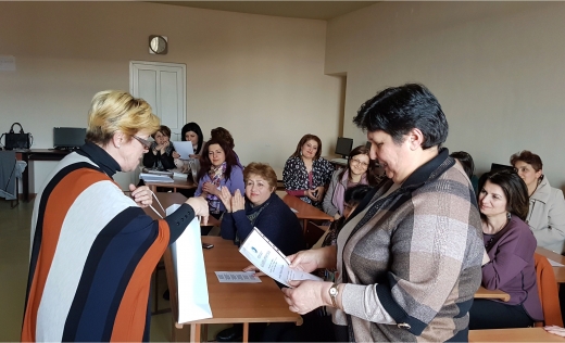 21 марта 2019 года в основной школе № 3 имени Католикоса всех армян Вазгена Первого г. Чаренцавана состоялся мастер-класс в рамках Республиканской инновационной программы «Педагогическая мастерская русиста». Данная программа действует с 2012 г. и реализуется Российским центром науки и культуры в Армении совместно с Ар¬мян-ской ассо¬циацией учите¬лей русского языка при содействии Министерства образования и науки Республики Армения. Основными целями программы являются создание методического пространства, позво¬ляюще¬го учителям русского языка и литературы повысить свой профессиональный уровень; ознакомление и распространение опыта работы творческих учителей, владеющих инновационными технологиями и методами обучения русскому языку. На мастер-классе присутствовали ведущий специалист отдела русского языка и образования РЦНК в Ереване Светлана Самуэлян, представители коллектива школы, учителя русского языка из ряда общеобразовательных школ г.Чаренцавана и Котайкской области. По окончании мастер-класса присутствующие приняли участие в обсуждении. Маргарита Енгибарян представила цели и задачи урока. Ведущий специалист отдела русского языка и образования РЦНК в Ереване Светлана Самуэлян отметила важность проведения подобных мастер-классов, способствующих популяризации передового педагогического опыта и продвижению русского языка в республике. Участники мероприятия высоко оценили методическое мастерство учительницы и высказали некоторые пожелания и рекомендации в отношении отдельных элементов урока. Светлана Самуэлян вручила Маргарите Енгибарян благодарность РЦНК в Ереване за активное участие в программе «Педагогическая мастерская русиста» и передала в дар книги и комплект мультимедийных материалов.