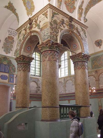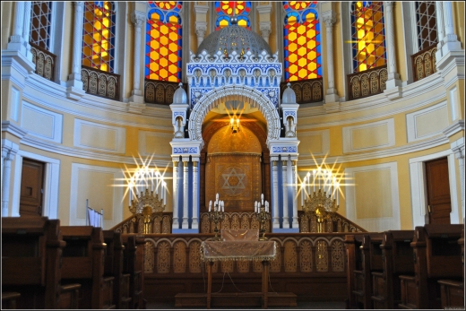 Սինագոգի ճարտարապետական տիպերը բազմազան են. ընդհանրությունն ուղղանկյուն հատակագիծն է, 3 կամ 5 նավով աղոթասրահը, «պատգամի տապանը» (արևելյան պատի մոտ) և սրբազան տեքստերի ընթերցանության համար նախատեսված ամբիոնը: