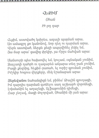 Յերեվանու նահանգիցն եմ,բինես՝ Թալին գյուղացի,